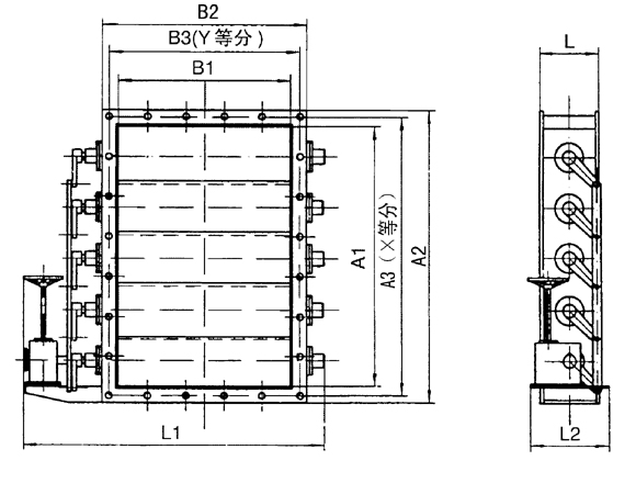 A1×B1 A2×B2 A3×B3 L n-d X Y 電動(dòng)裝置 功率KW 風(fēng)機(jī) 機(jī)號(hào) L1 L2 重量(kg) 128×92 182×148 160×126 160 14-Φ7 4 3 Z5-18 ZA50-18 0.18 9-19 NO4 755 550 102 144×104 198×160 176×135 NO4.5 767 108 160×115 214×171 192×150 NO5 778 115 179×129 233×185 212×162 NO5.6 792 118 202×145 258×204 236×180 NO6.3 811 124 196×128 150×184 228×165 9-26 NO4 791 122 221×144 175×200 252×177 NO4.5 807 128 245×160 299×216 284×192 NO5 823 132 274×179 328×235 305×212 18-Φ7 5 4 NO5.6 842 143 309×202 365×261 340×236 NO6.3 868 158 227×163 293×232 270×204 14-Φ10 4 6 NO7.1 839 130 256×184 322×253 296×228 NO8 860 134 288×207 354×276 330×252 18-Φ10 5 4 NO9 883 154