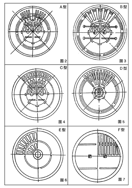 充氣箱在庫內(nèi)排列時(shí),原則上要求實(shí)際排列面積占總面積的比例越大越好,攪拌庫和混合式均化庫中心區(qū)(攪拌區(qū)),對(duì)這點(diǎn)要求更為重要,現(xiàn)提供A、B、C、D、E、F六種基本排列形式供選用。