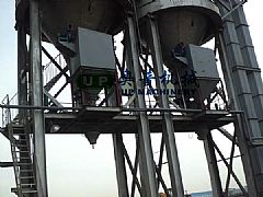 散裝機(jī)主要用于散裝水泥及其它粉狀物料,用來控制散裝機(jī)裝車時的水泥落料狀態(tài);“斜槽風(fēng)機(jī)”用來使輸送斜槽內(nèi)水泥物料流態(tài)化,散裝機(jī)為其主體設(shè)備,其下料頭伸縮長度為1.6米,以適應(yīng)不同車型的裝車要求。