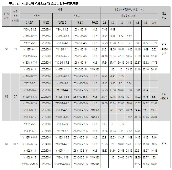 NE型提升機為板鏈、重力式誘導卸料提升設備,設計原理先進,整機運行可靠。