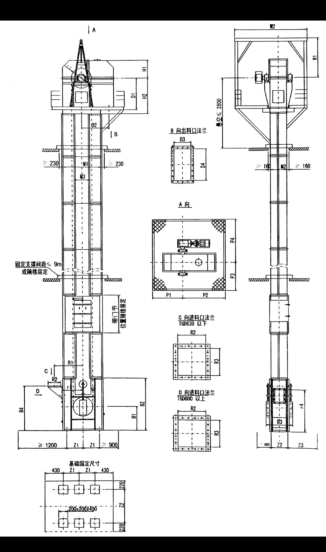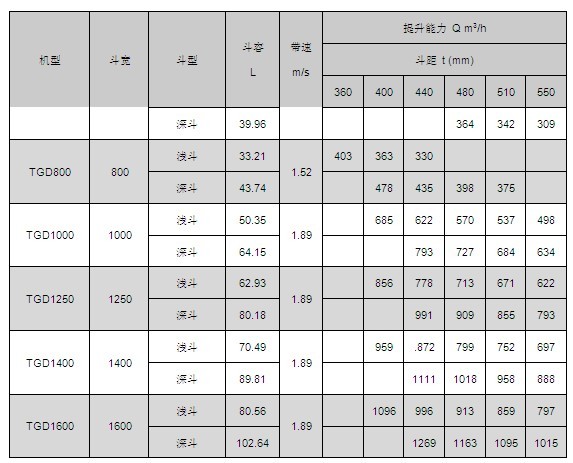 TGD提升機牽引構(gòu)件采用高強度鋼絲繩芯橡膠帶,克服了鏈條嚙合驅(qū)動產(chǎn)生動載荷,較鏈條更輕便,工作平穩(wěn),能以更快的運動速度達到更高的生產(chǎn)率,在同樣的生產(chǎn)條件下,膠帶因其工作速度高和自重較輕,可使物料線載荷和牽引構(gòu)件的線載荷減少,從而減少整機的尺寸和自重。同時由于膠帶具有良好彈性和柔韌性,在料斗進行裝載時有減振作用,由于采用了高強度鋼絲繩芯膠帶,可使提升機的提升高度和輸送量大為提高,因而該產(chǎn)品具有良好的發(fā)展前景。