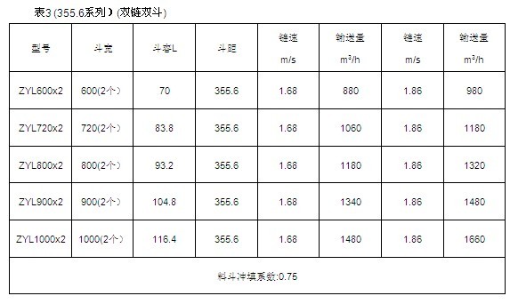 特別提示:1、提升量超過(guò)800m3/h的提升機(jī)建議采用雙鏈雙斗。
