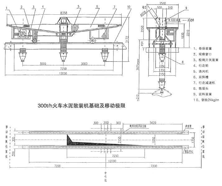 2、散裝頭下降行程上限2500mm,移動(dòng)距離上限6000mm