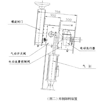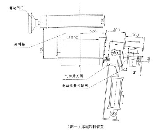 庫底卸料裝置由庫底螺旋閥、庫底分料箱、氣動(dòng)開關(guān)閥、電動(dòng)流量控制閥及卸料溜子組成(見圖一),用于水泥生料粉或水泥庫底卸料。庫底卸料裝置能自動(dòng)調(diào)節(jié)卸料流量且均勻,其結(jié)構(gòu)合理,操作維護(hù)簡(jiǎn)單方便,可設(shè)三個(gè)下料口,用戶也可選用庫側(cè)卸料裝置(見圖二)。